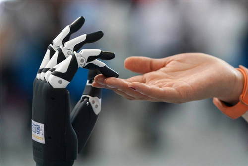 2019年6月13日,全國(guó)大眾創(chuàng)業(yè)萬(wàn)眾創(chuàng)新活動(dòng)周——北京會(huì)場(chǎng)主題展在中關(guān)村國(guó)家自主創(chuàng)新示范區(qū)展示中心開幕。這是一位參展商在演示展出的機(jī)器人產(chǎn)品。新華社記者鞠煥宗攝