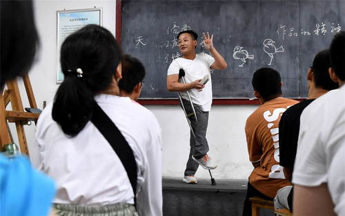 2019年9月9日,在位于西安市的陜西省城市經(jīng)濟(jì)學(xué)校,計(jì)算機(jī)平面設(shè)計(jì)專業(yè)的美術(shù)老師王旭陽(yáng)在給新生講授繪畫(huà)基礎(chǔ)知識(shí)。該校是西安唯一一所針對(duì)殘障人士設(shè)立的特殊教育中等職業(yè)學(xué)校。新華社記者劉瀟攝