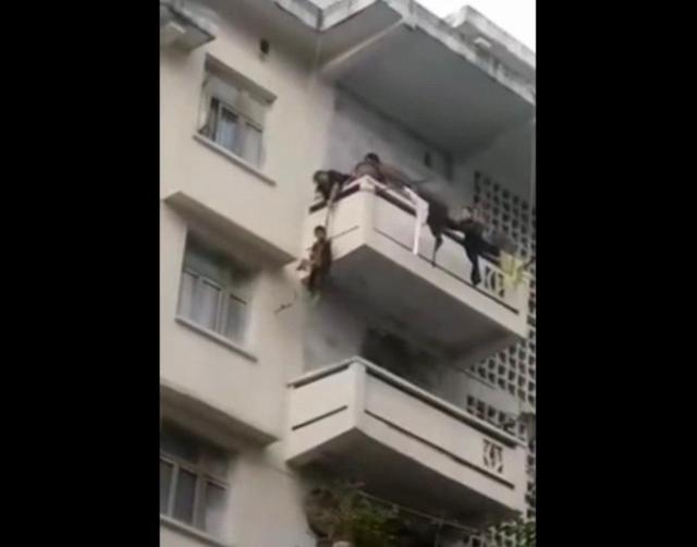 險!老太用繩子綁孫子從5樓吊至3樓救貓 網(wǎng)友:孫子是買貓送的?