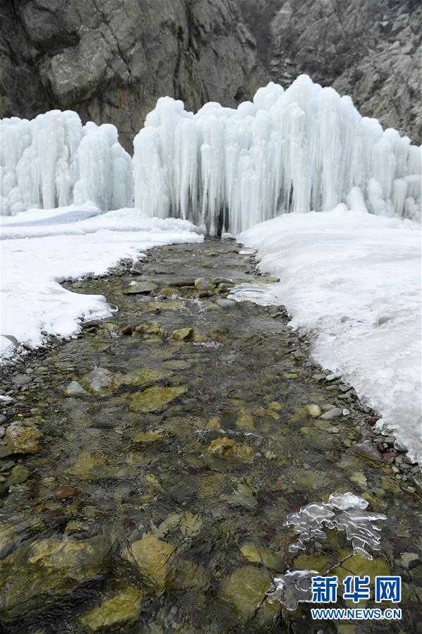 這是1月7日拍攝的賀蘭山巖畫景區(qū)內(nèi)的冰瀑景觀。 新華社記者 王鵬 攝