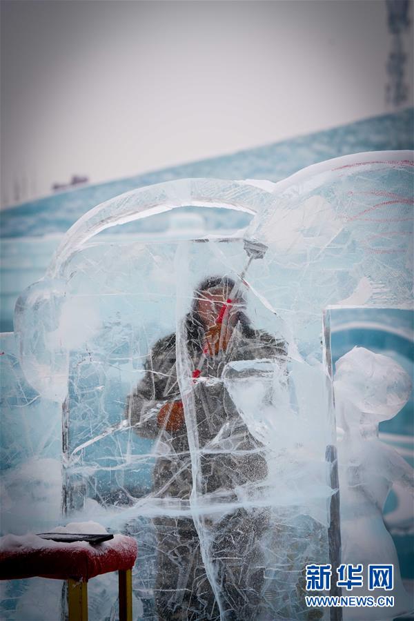 1月6日,參賽者在創(chuàng)作冰雕。新華社記者王松攝
