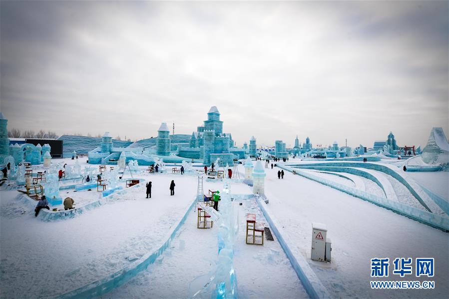 冰雕師在哈爾濱冰雪大世界內(nèi)雕刻出主題各異的冰雕作品(1月8日攝)。新華社記者王松攝