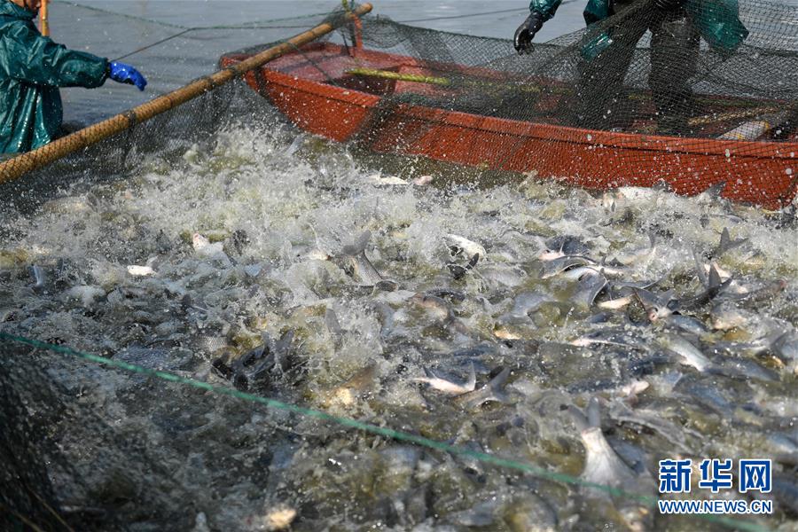 12月28日,漁民們在菱湖鎮(zhèn)盛江家庭農(nóng)場拉網(wǎng)捕魚。新華社記者黃宗治攝