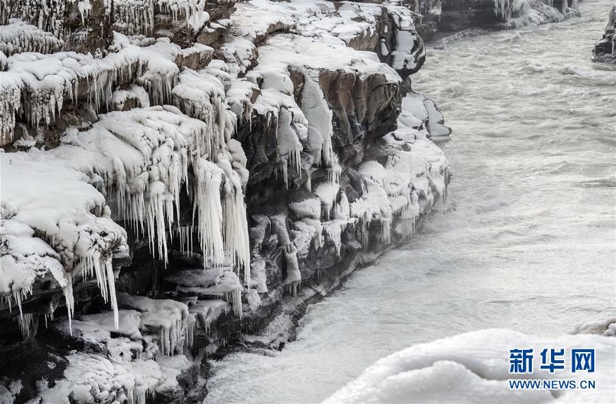 1月12日在陜西黃河壺口瀑布景區(qū)拍攝的“冰峰倒掛”景觀。新華社發(fā)(蘭華攝)