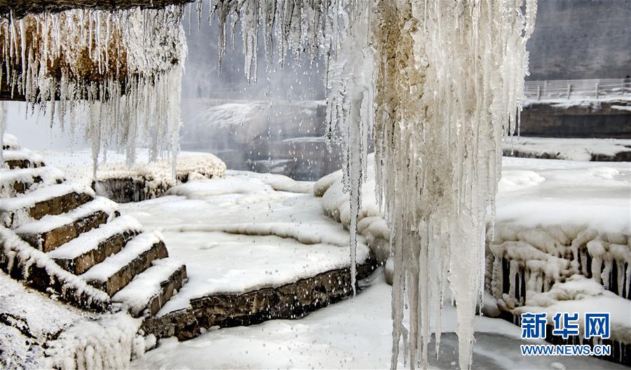 壺口瀑布因氣溫降低形成的景觀(12月14日攝)。新華社記者陶明攝