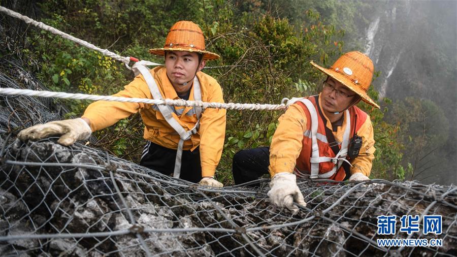 1月14日,百色工務(wù)段白水河橋隧工區(qū)班組成員在搜山掃石。在中國鐵路南寧局集團公司百色工務(wù)段白水河橋隧工區(qū),有一個由14名工人組成的班組。他們常年像“爬山虎”一樣行走攀爬在地形險峻、云霧繚繞的高山上,負責(zé)南昆鐵路轄區(qū)路段的搜山掃石工作,清除一切可能危害鐵路行車安全的因素,保障旅客出行安全。新華社記者張愛林攝