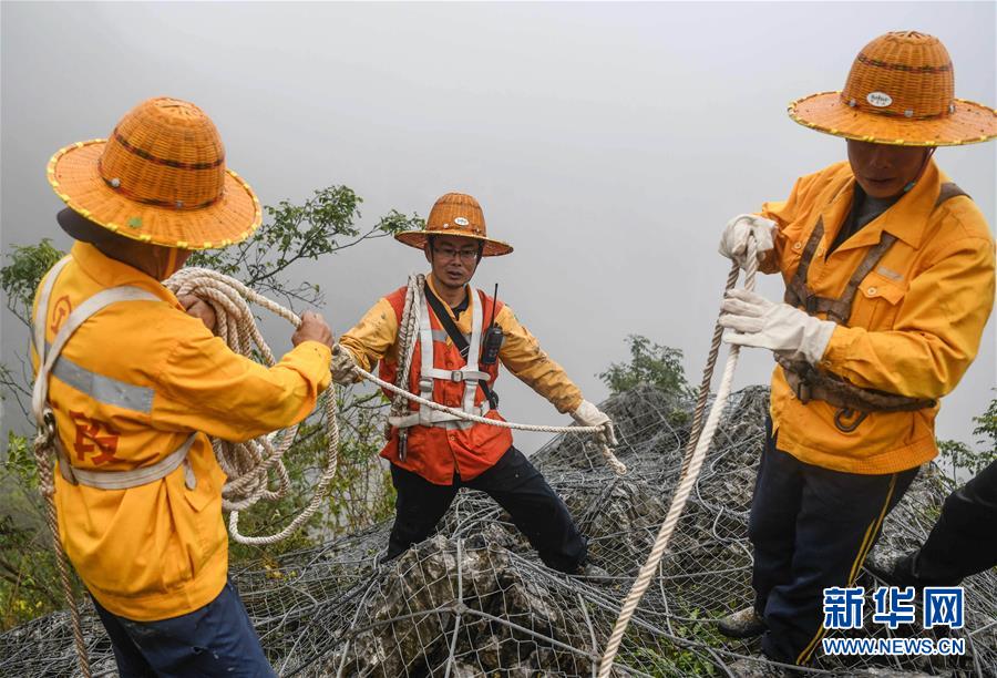 1月14日,百色工務段白水河橋隧工區(qū)班組工長王勇(中)在穿戴安全裝備,準備下山崖巡查。在中國鐵路南寧局集團公司百色工務段白水河橋隧工區(qū),有一個由14名工人組成的班組。他們常年像“爬山虎”一樣行走攀爬在地形險峻、云霧繚繞的高山上,負責南昆鐵路轄區(qū)路段的搜山掃石工作,清除一切可能危害鐵路行車安全的因素,保障旅客出行安全。新華社記者張愛林攝