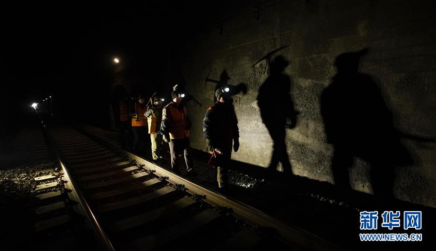 1月6日,在加格達(dá)奇工務(wù)段西羅奇嶺二號(hào)隧道,西羅奇維修工隊(duì)工作人員進(jìn)行維修作業(yè)。新華社記者才揚(yáng)攝