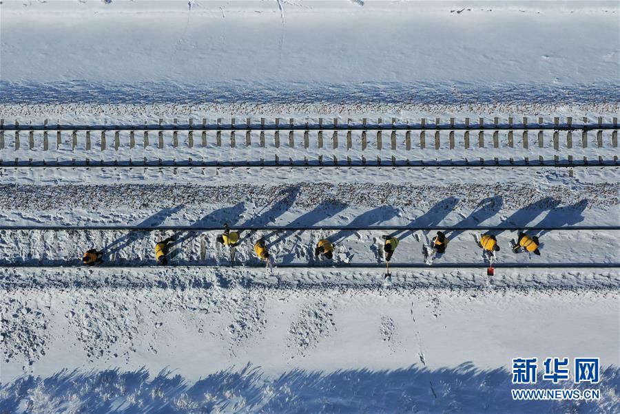 1月13日,白音庫倫綜合維修車間線路養(yǎng)護(hù)職工前往作業(yè)點(diǎn)。新華社記者劉磊攝