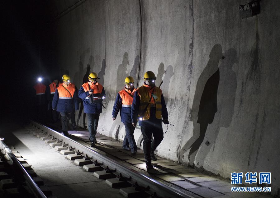 1月7日,在西羅奇嶺二號(hào)隧道附近,西羅奇維修工隊(duì)工作人員前往維修地點(diǎn)。新華社記者才揚(yáng)攝