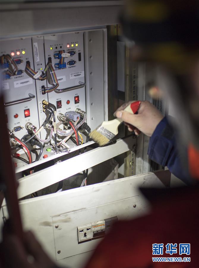 通化通信車間無線工區(qū)鐵路通信工人檢修維護(hù)隧道內(nèi)用于通信傳輸?shù)墓饫w直放設(shè)備(1月10日攝)。2020年春運(yùn)1月10日拉開帷幕。新華社記者許暢攝