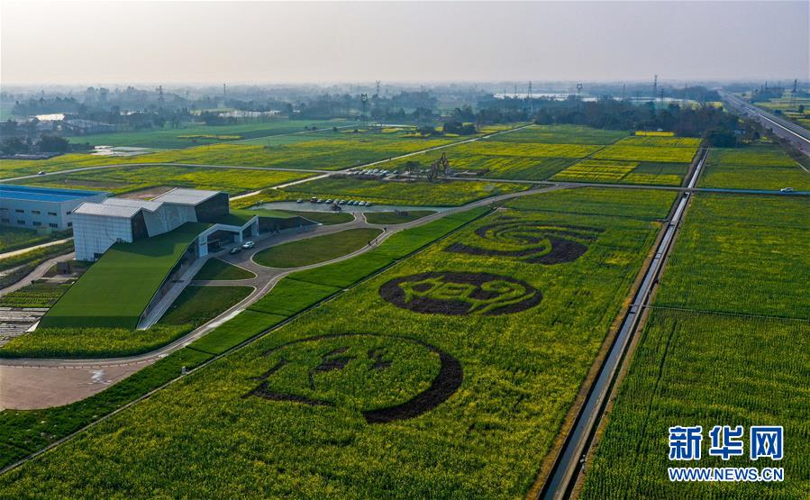 2月24日在四川省大邑縣安仁鎮(zhèn)永興村拍攝的油菜花田(無人機照片)。新華社記者王曦攝