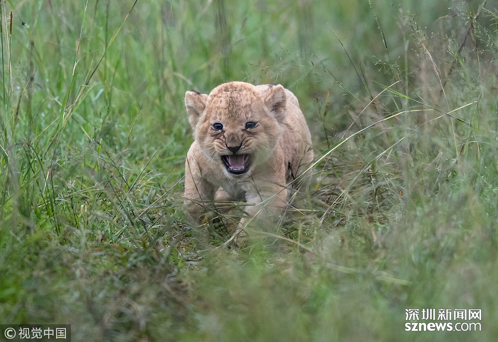 英國(guó)野生動(dòng)物攝影師Paul Goldstein在肯尼亞的馬賽馬拉拍到了一頭小獅子被媽媽教訓(xùn)的場(chǎng)面。