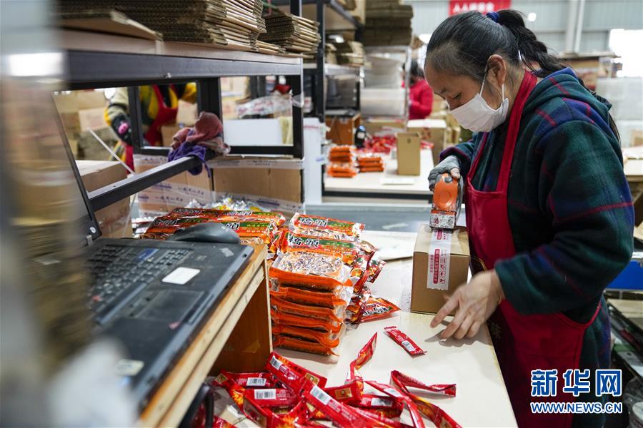 2月27日,在秀山(武陵)現(xiàn)代物流園區(qū)的電商云倉(cāng)內(nèi),工人在打包包裹。地處重慶市秀山縣的秀山(武陵)現(xiàn)代物流園區(qū),是渝湘黔三省市交界地區(qū)的區(qū)域性物流中心。重慶市秀山縣在做好新冠肺炎疫情防控工作前提下,當(dāng)?shù)卣e極幫助電商、物流企業(yè)解決招工、運(yùn)輸、銷(xiāo)售等方面的實(shí)際問(wèn)題,推動(dòng)秀山(武陵)現(xiàn)代物流園區(qū)快速進(jìn)入全面復(fù)工復(fù)產(chǎn)階段。據(jù)介紹,隨著物流園區(qū)的電商和物流企業(yè)全面復(fù)工復(fù)產(chǎn),既滿足當(dāng)?shù)厝罕姷奈镔Y供應(yīng),又幫助當(dāng)?shù)剞r(nóng)產(chǎn)品通過(guò)電商平臺(tái)實(shí)現(xiàn)快速銷(xiāo)售。新華社記者劉潺攝
