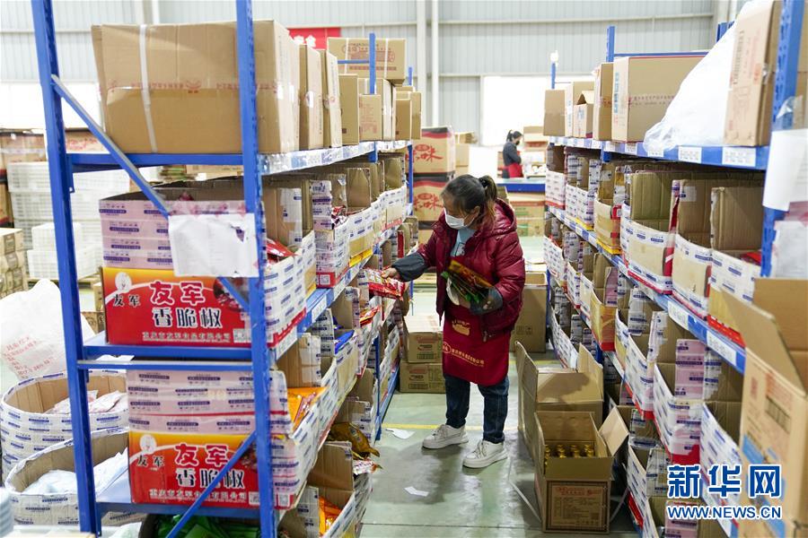 2月27日,在秀山(武陵)現(xiàn)代物流園區(qū)的電商云倉內(nèi),工人在按照訂單配貨。地處重慶市秀山縣的秀山(武陵)現(xiàn)代物流園區(qū),是渝湘黔三省市交界地區(qū)的區(qū)域性物流中心。重慶市秀山縣在做好新冠肺炎疫情防控工作前提下,當(dāng)?shù)卣e極幫助電商、物流企業(yè)解決招工、運輸、銷售等方面的實際問題,推動秀山(武陵)現(xiàn)代物流園區(qū)快速進入全面復(fù)工復(fù)產(chǎn)階段。據(jù)介紹,隨著物流園區(qū)的電商和物流企業(yè)全面復(fù)工復(fù)產(chǎn),既滿足當(dāng)?shù)厝罕姷奈镔Y供應(yīng),又幫助當(dāng)?shù)剞r(nóng)產(chǎn)品通過電商平臺實現(xiàn)快速銷售。新華社記者劉潺攝