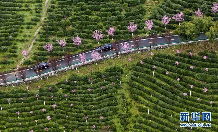 3月2日,車輛行駛在平利縣長安鎮(zhèn)洪福茶山道路上(無人機照片)。新華社記者陶明攝