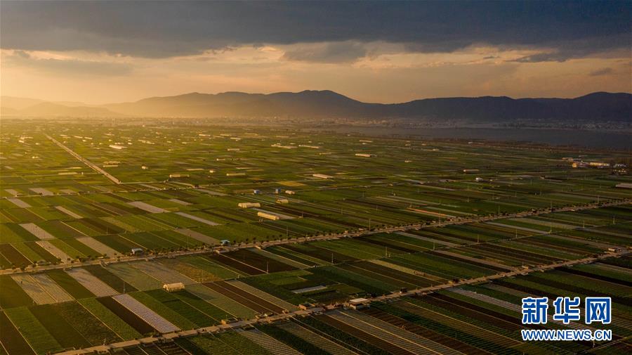 時下正值農(nóng)忙時節(jié),云南省玉溪市通海縣的農(nóng)作物長勢喜人,山巒、湖水與農(nóng)田組成了一幅美麗的田園詩畫卷。