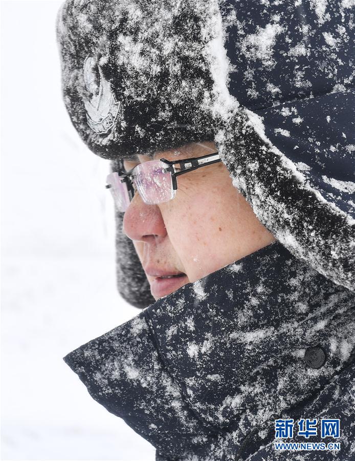 吉林省琿春森林公安局敬信派出所所長高巍在巡護(hù)途中(3月4日攝)。新華社記者 許暢 攝