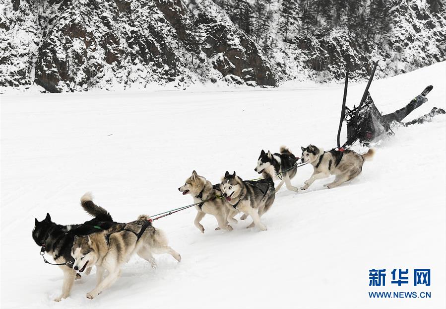 當(dāng)?shù)貢r(shí)間3月4日,俄羅斯克拉斯諾亞爾斯克,當(dāng)?shù)嘏e行10公里狗拉雪橇比賽。(圖片來源:視覺中國(guó))