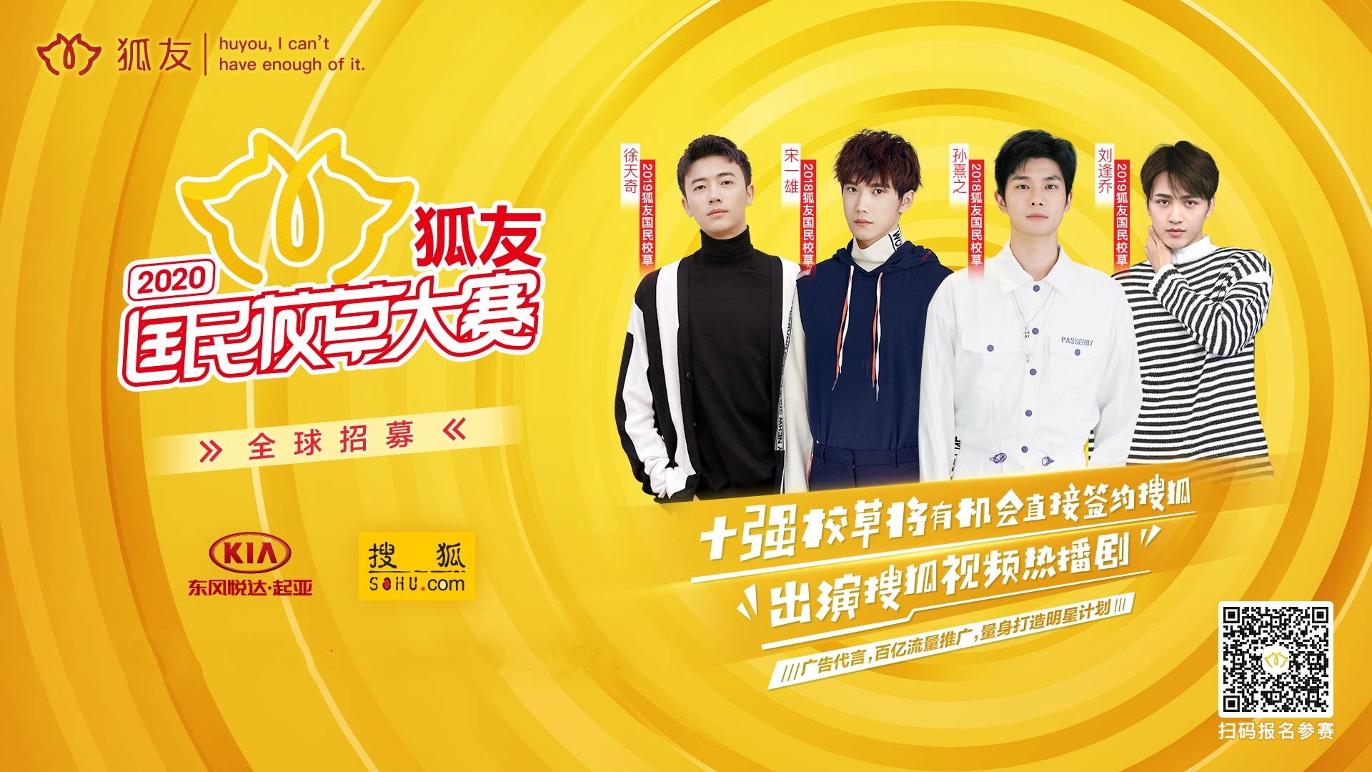 想成為下一部爆款劇的男主角?想進(jìn)入搜狐這個大文娛生態(tài)系統(tǒng)?快來報名參加“2020狐友國民校草大賽”吧!