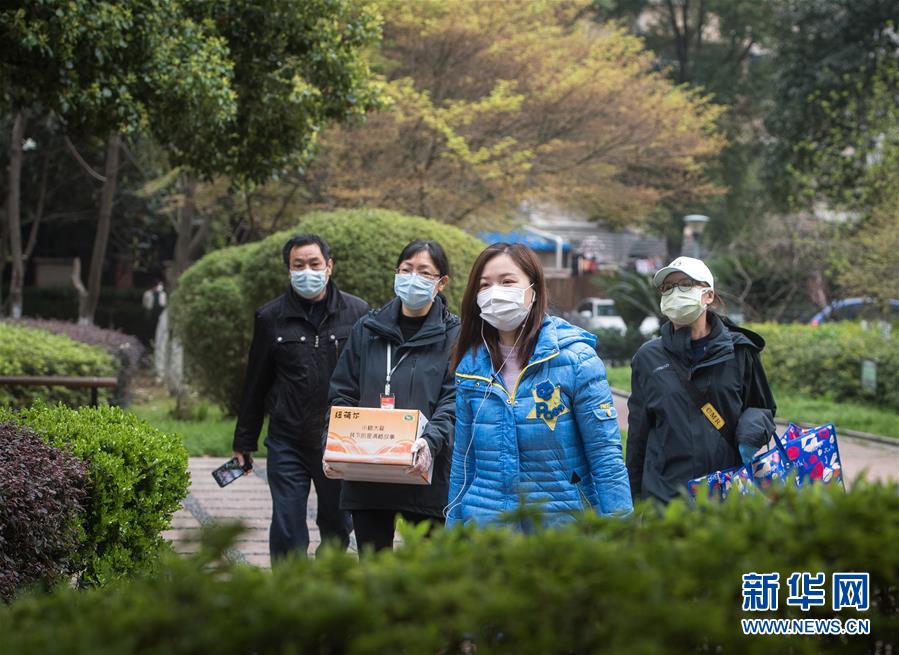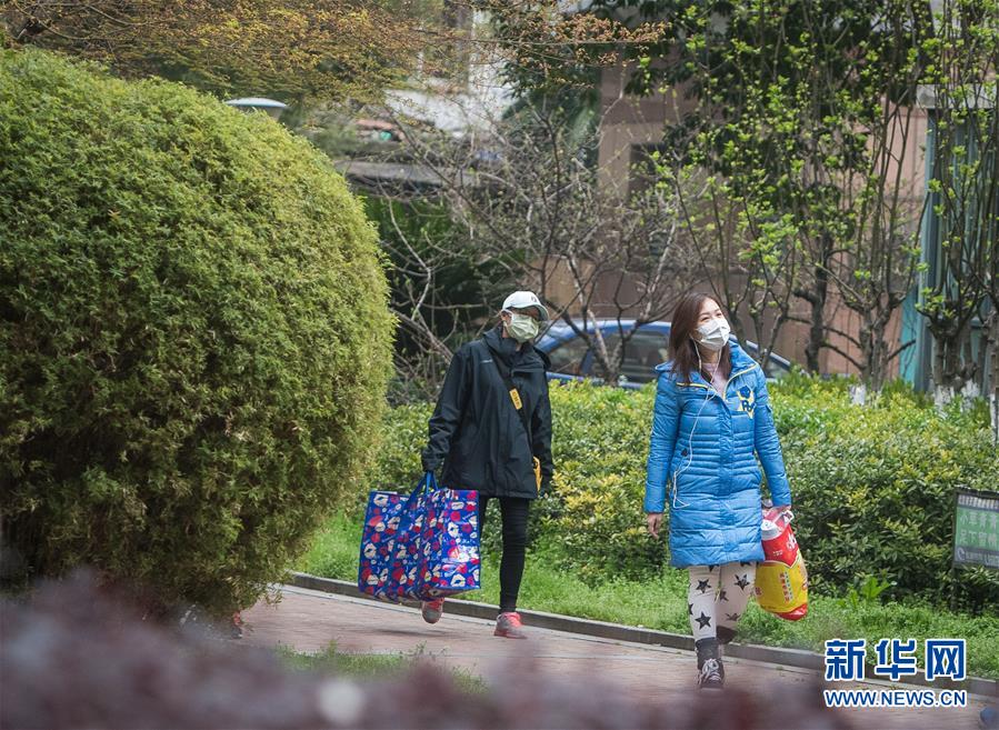 3月12日,小區(qū)樹葉綠了,黎婧(右二)與網(wǎng)格員走在回家路上。 3月12日,插畫師黎婧和84位病友離開自己居住的武漢軟件工程職業(yè)學(xué)院康復(fù)驛站,回到自己家中。他們都是治愈出院的新冠病毒肺炎患者,已經(jīng)在武漢軟件工程職業(yè)學(xué)院康復(fù)驛站進(jìn)行了14天醫(yī)學(xué)觀察,達(dá)到醫(yī)學(xué)標(biāo)準(zhǔn),成功解除隔離。他們由專車運(yùn)送至所屬社區(qū)附近的集散點(diǎn)后,在社區(qū)工作人員的陪同下回家。 新華社記者 肖藝九 攝