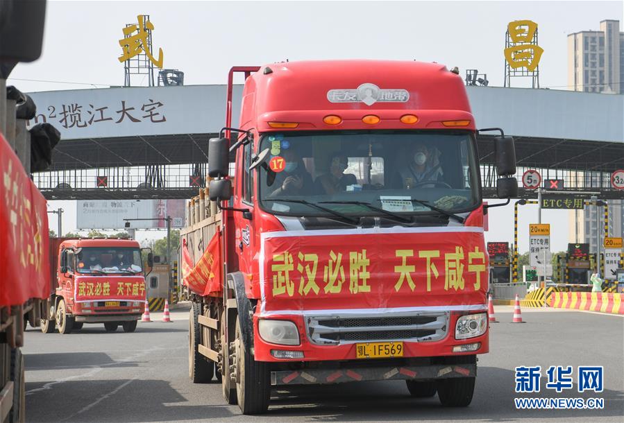 3月13日,滿載活魚的水產(chǎn)運輸車進入武漢。當日,首批100噸調配自湖北省咸寧市的活魚運抵武漢市硚口區(qū)11個街道下轄社區(qū)。咸寧是魚米之鄉(xiāng),水產(chǎn)資源豐富。此次戰(zhàn)疫咸寧得到了全國人民的支持,疫情得到良好控制。咸寧送魚,希望傳遞愛心,支持武漢早日戰(zhàn)勝疫情。新華社記者程敏攝