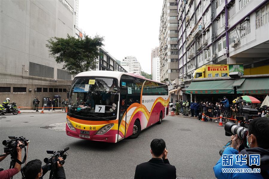 2月20日,首批被接回的香港居民乘坐專車,抵達(dá)特區(qū)政府設(shè)立在新界的火炭駿洋邨檢疫營。新華社記者李鋼攝