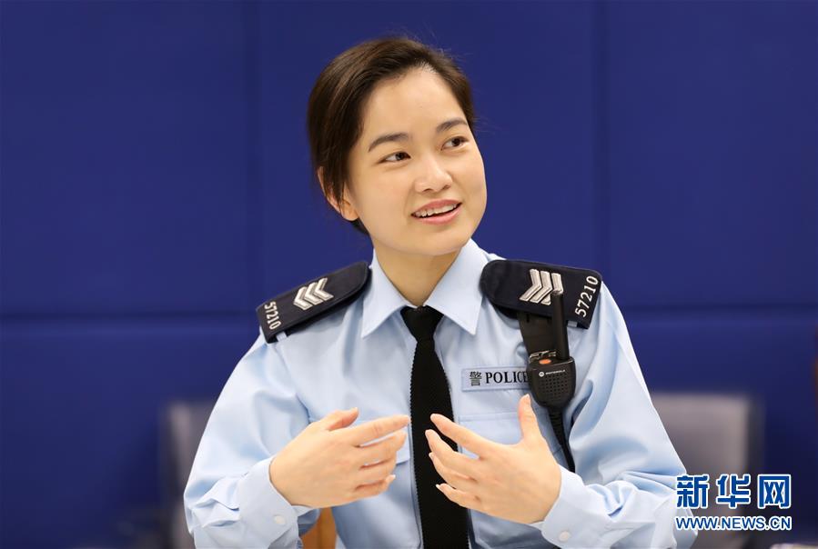 香港西區(qū)警署負(fù)責(zé)警民關(guān)系工作的警長陳Sir接受記者采訪(1月30日攝)。新華社記者李鋼攝