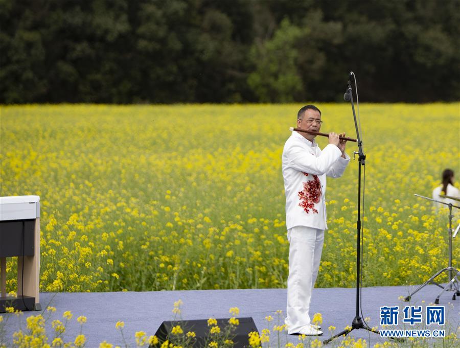 3月16日,演員在李坑村的“花田音樂會”上表演。 新華社記者 張浩波 攝