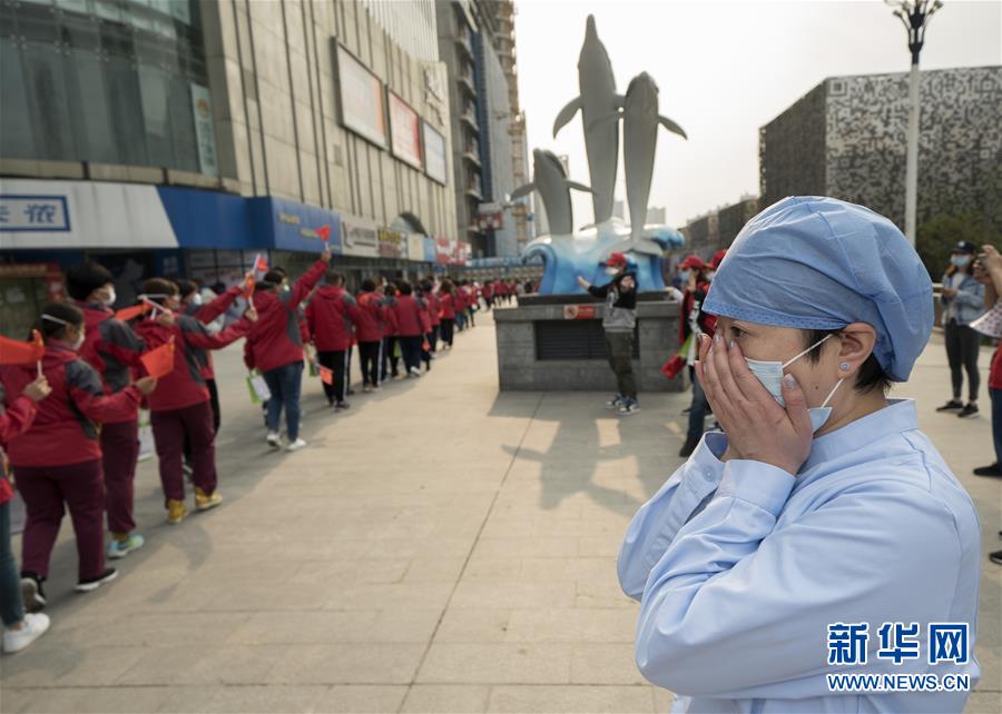 3月21日,武漢市第一醫(yī)院的護(hù)士長杜沛在送別天津市醫(yī)療隊隊員時掩面而泣。杜沛是負(fù)責(zé)與天津市醫(yī)療隊對接的護(hù)士長。