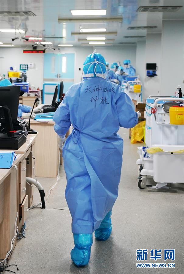 80后護(hù)士仲雅快步走向患者床旁準(zhǔn)備護(hù)理(3月20日攝)。 武漢火神山醫(yī)院重癥醫(yī)學(xué)一科的護(hù)理團(tuán)隊(duì)共50名護(hù)士,其中絕大多數(shù)是80后、90后女性,她們不懼危險(xiǎn),奮戰(zhàn)在抗擊疫情的最前沿“紅區(qū)”。 新華社記者王毓國攝