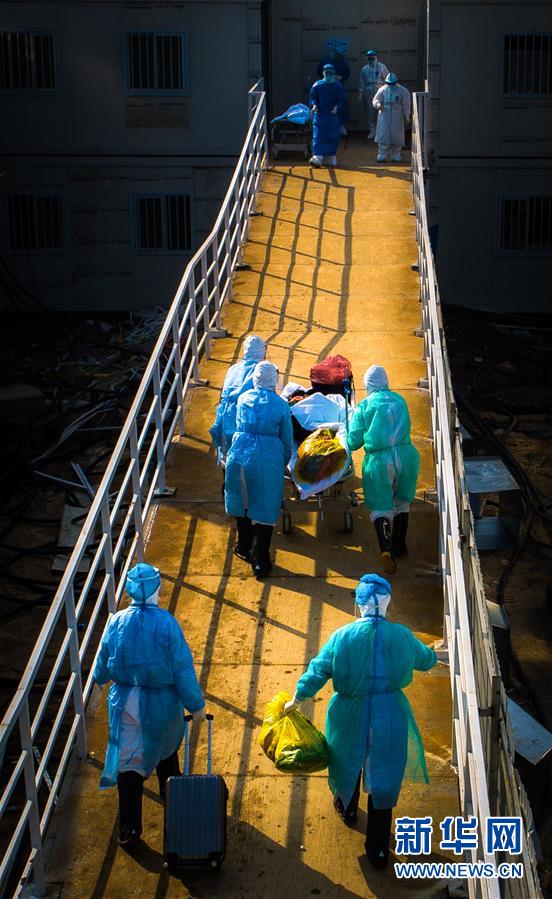 醫(yī)護(hù)人員將患者轉(zhuǎn)運至武漢火神山醫(yī)院病房(2月4日攝)。新華社記者肖藝九攝
