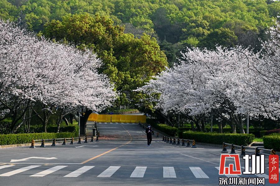 校園里櫻花的核心區(qū)域,除了萬林藝術博物館旁的進出口外,其它通道均被封閉,有專門的人員值守。