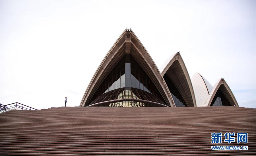 3月24日,一名游客站在澳大利亞悉尼歌劇院前。 新華社記者 白雪飛 攝