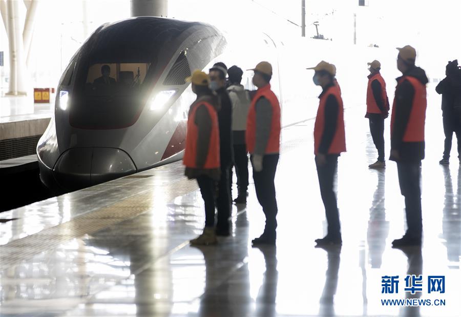 3月28日,工作人員迎來徐徐進站的G1112次列車。新華社記者費茂華攝
