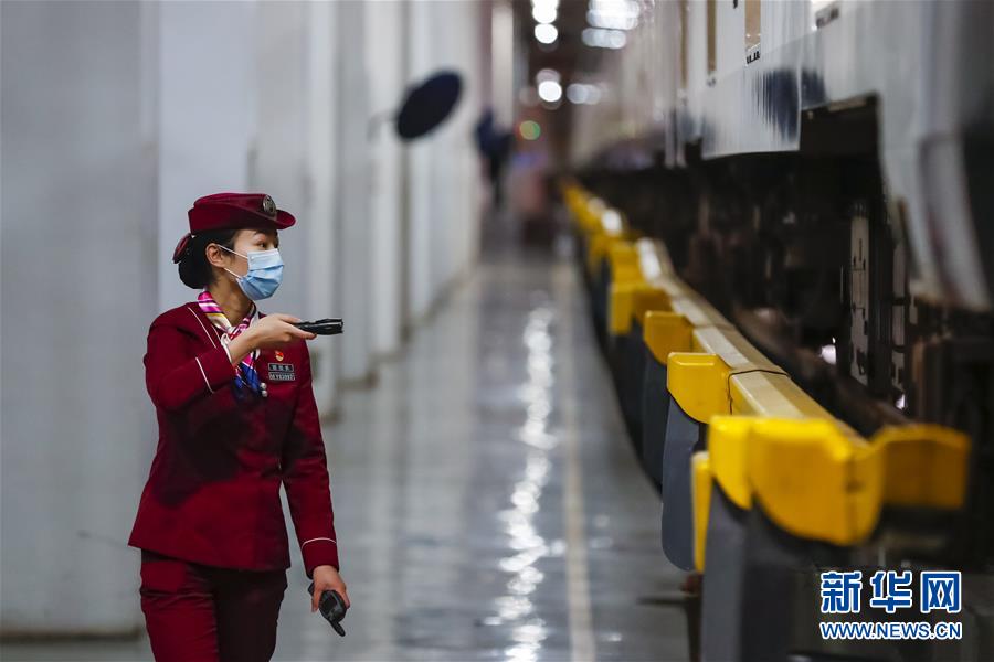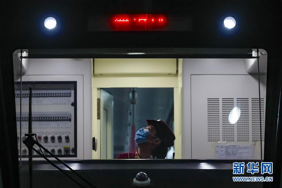 3月28日,武漢地鐵運營有限公司司機吳亞在常青車輛段檢查車輛情況。新華社記者沈伯韓攝