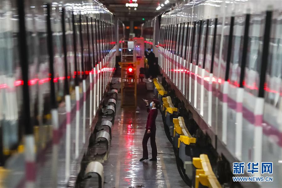3月28日,武漢地鐵運(yùn)營(yíng)有限公司司機(jī)吳亞在常青車輛段檢查車輛情況。新華社記者沈伯韓攝