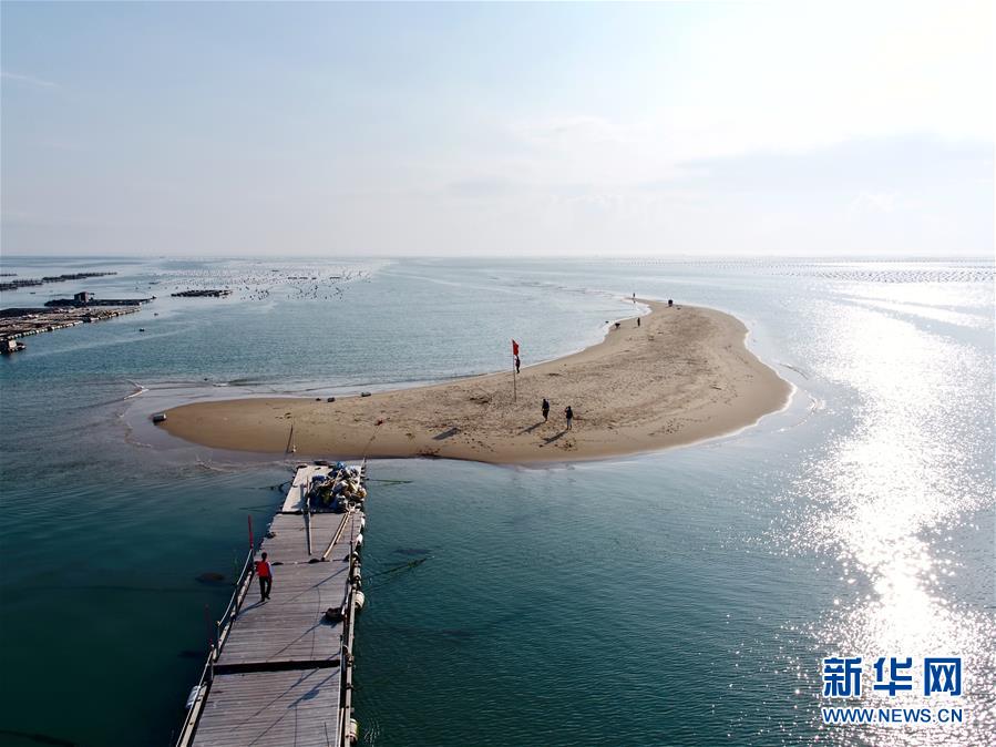 這是3月26日拍攝的福建漳州東山縣岐下村附近海域的魚骨沙洲(無(wú)人機(jī)照片)。新華社記者姜克紅攝