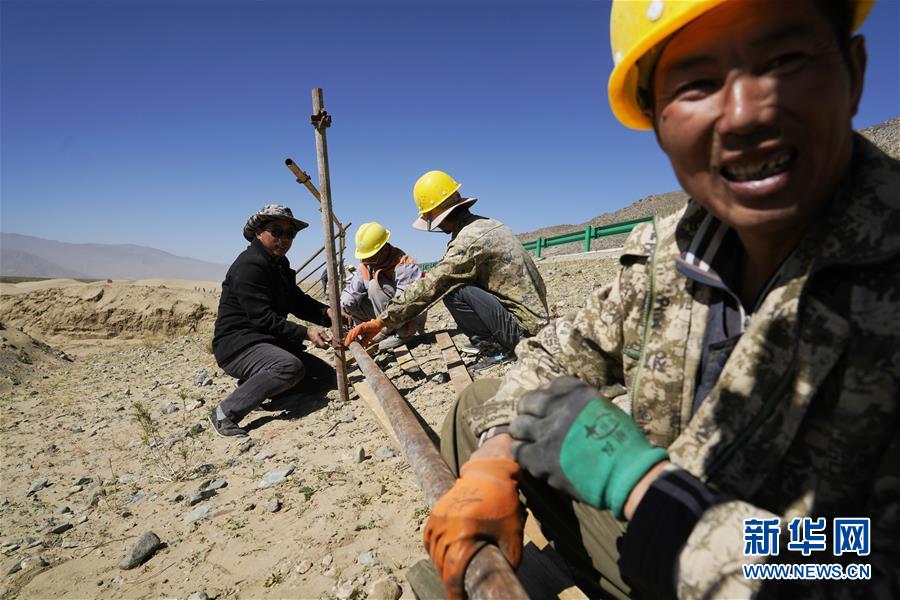 10月17日,工作人員在扎囊國(guó)家沙漠公園施工。新華社記者普布扎西攝