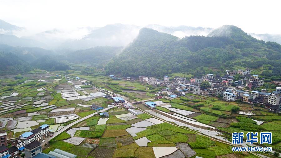 當日,在貴州省黔東南苗族侗族自治州,一場春雨過后,村莊、山川、田野在薄霧中若隱若現(xiàn),美若畫卷。
