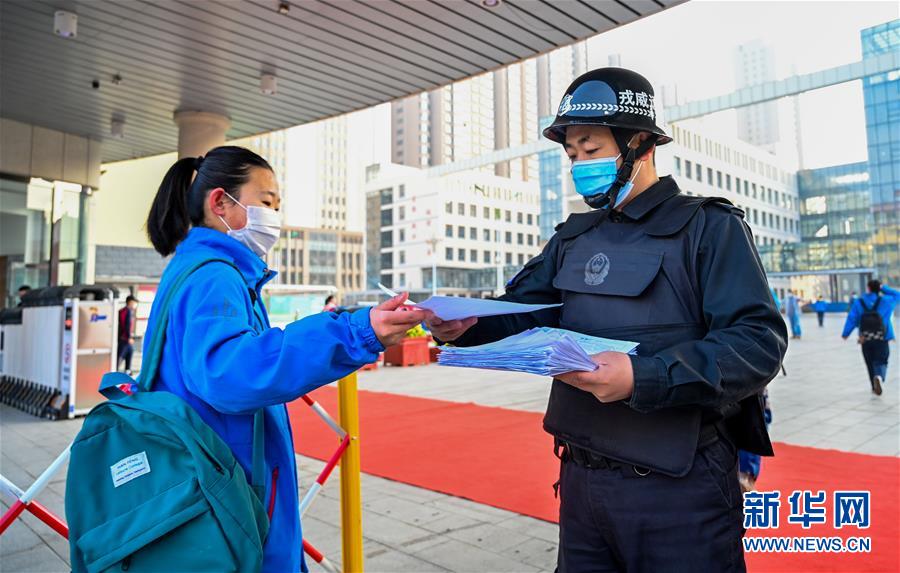 3月30日,呼和浩特市第三十五中學(xué)工作人員在校門口收回學(xué)生假期健康登記表。當(dāng)日,內(nèi)蒙古自治區(qū)全區(qū)高三和初三年級(jí)開學(xué)復(fù)課。新華社記者連振攝