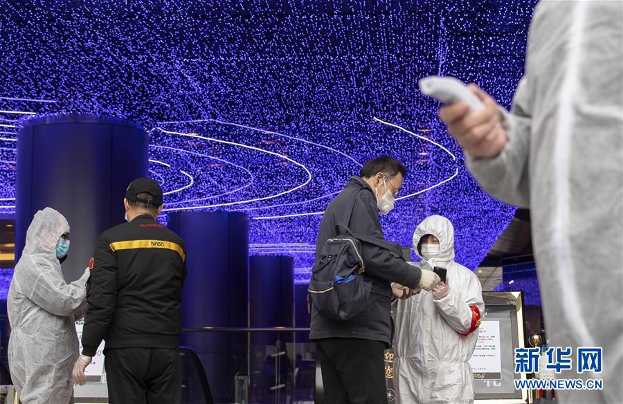 3月30日,在武商世貿(mào)廣場(chǎng),工作人員在為顧客測(cè)量體溫。當(dāng)日,武漢市多家商場(chǎng)開門迎客。新華社記者費(fèi)茂華攝