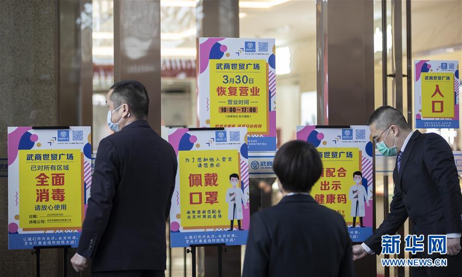 3月30日,顧客排隊(duì)進(jìn)入武商國(guó)際廣場(chǎng)。當(dāng)日,武漢市多家商場(chǎng)開門迎客。新華社記者費(fèi)茂華攝
