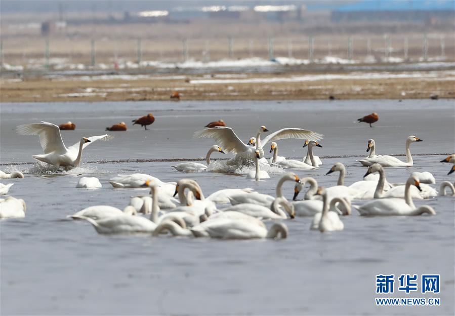 這是4月1日在張北縣黃蓋淖國(guó)家濕地公園拍攝的候鳥。 新華社記者楊世堯攝
