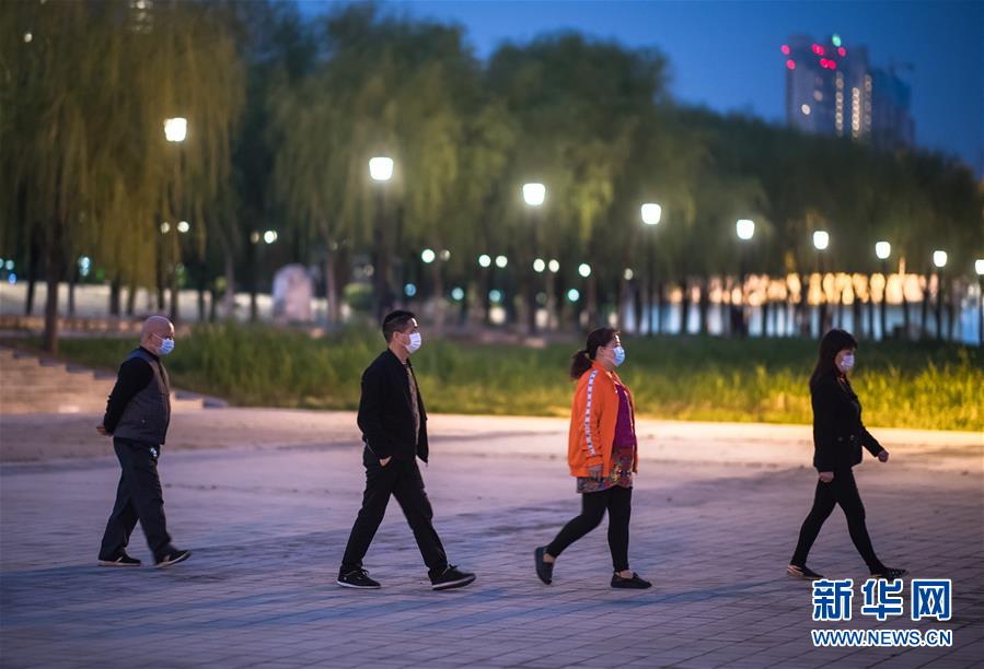 4月1日傍晚,市民在江堤上健身。新華社記者費(fèi)茂華攝