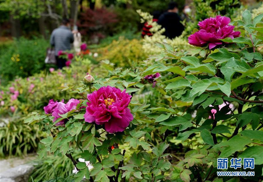 4月6日在位于上海松江的江南古典園林——醉白池拍攝的牡丹花。  新華社記者 劉穎 攝