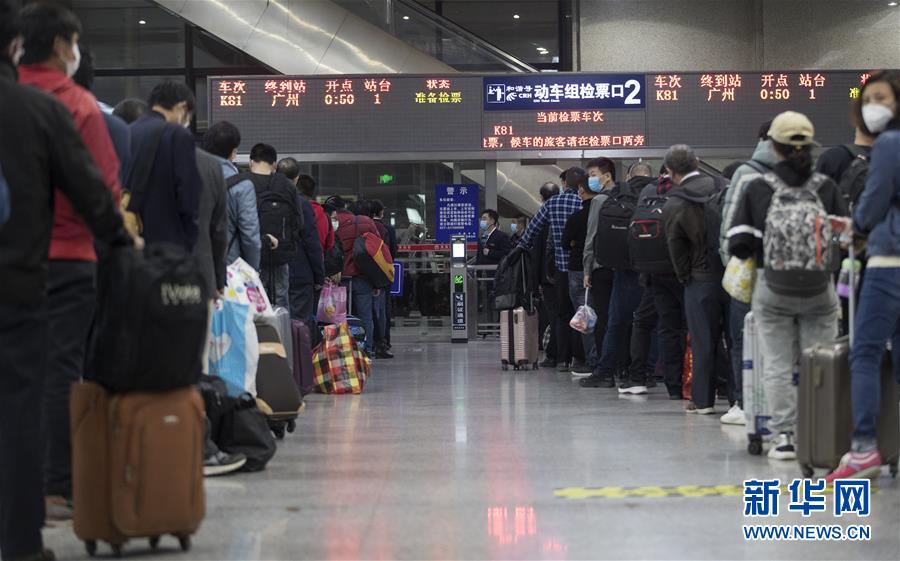 4月8日凌晨,乘客在武昌火車站排隊等候K81次列車。 新華社記者 費茂華 攝