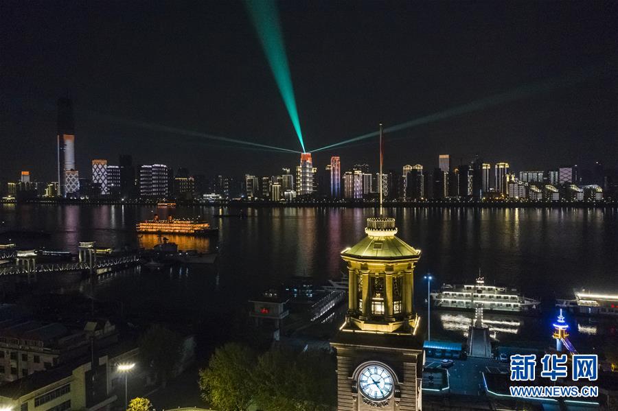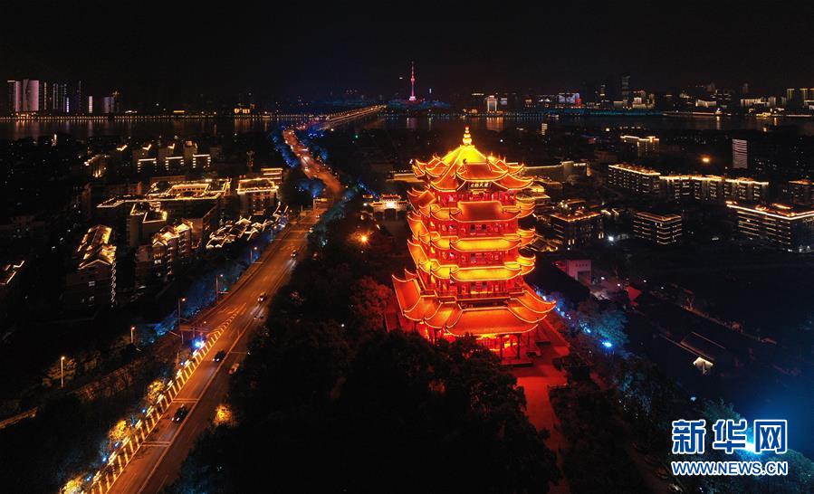 4月8日零時(shí)起,武漢市正式解除離漢離鄂通道管控措施,全市景觀照明開(kāi)啟(無(wú)人機(jī)拍攝)。新華社記者程敏攝