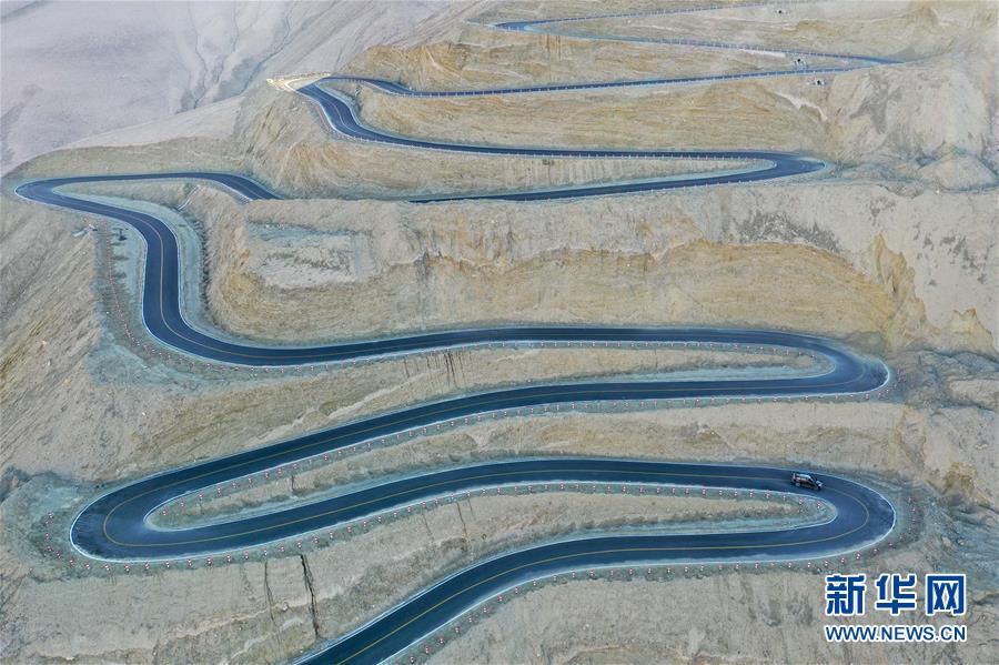 這是10月20日無人機拍攝的新疆塔什庫爾干塔吉克自治縣吾格亞提盤山公路。在中國西陲的新疆帕米爾高原,塔什庫爾干塔吉克自治縣縣城到瓦恰鄉(xiāng)之間有條蜿蜒的盤山公路,海拔超4200米,全長36公里,最大落差近1000米,被當?shù)厝朔Q為“高原天路”。盤山公路彎曲盤旋的走勢與周邊雄渾壯麗的風光,共同構成一幅壯美畫卷。這條公路名為吾格亞提盤山公路,2019年7月投入使用,便利了山區(qū)農牧民的出行。新華社記者丁磊攝