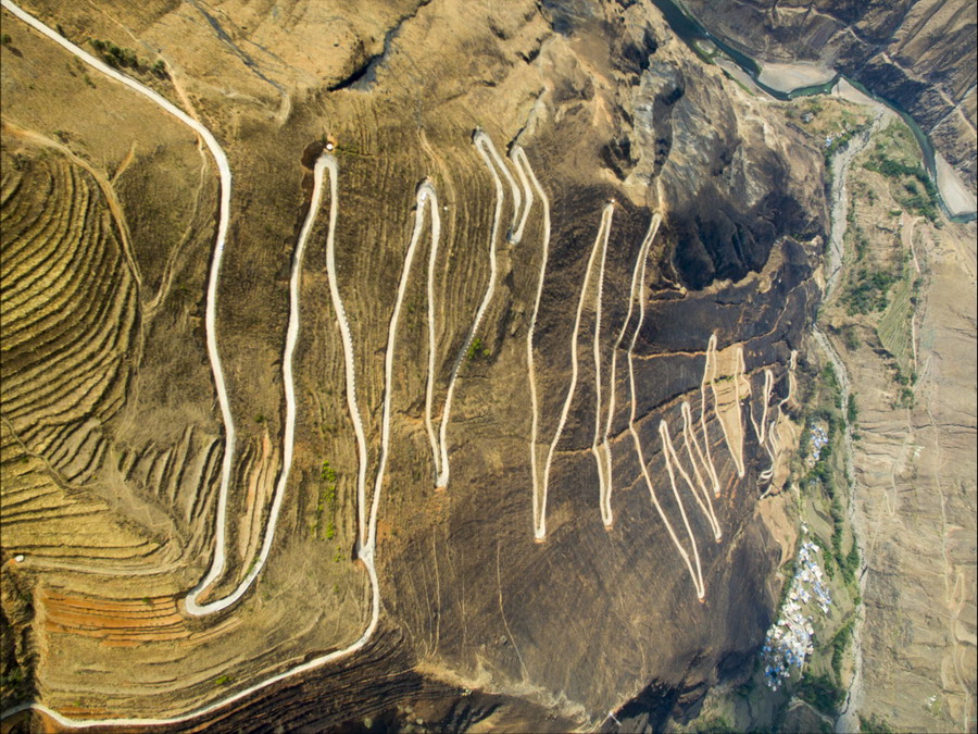 這是“怒江72拐”,該處位于西藏自治區(qū)昌都市八宿縣境內,是川藏線上一段艱險與美景并存的山路(10月23日無人機拍攝)。全長2000多公里的川藏公路,從成都開始,一路向西到終點拉薩,在橫斷山脈、喜馬拉雅山脈和念青唐古拉山脈間蜿蜒盤旋,因海拔落差大,彎道眾多,形成天路奇觀。川藏公路1954年12月25日通車,65年來,國家對川藏公路進行了大規(guī)模改造升級,建設了眾多橋梁和隧道,行車條件得到明顯改善。新華社記者江宏景攝